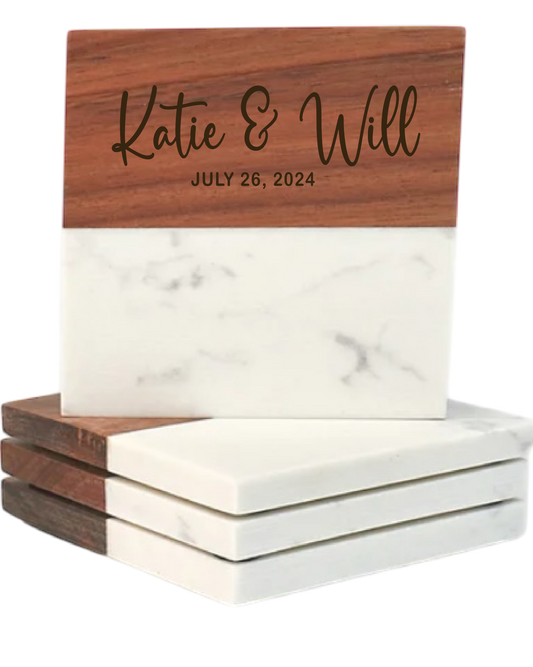 Personalized Marble & Acacia Wood Coaster Set