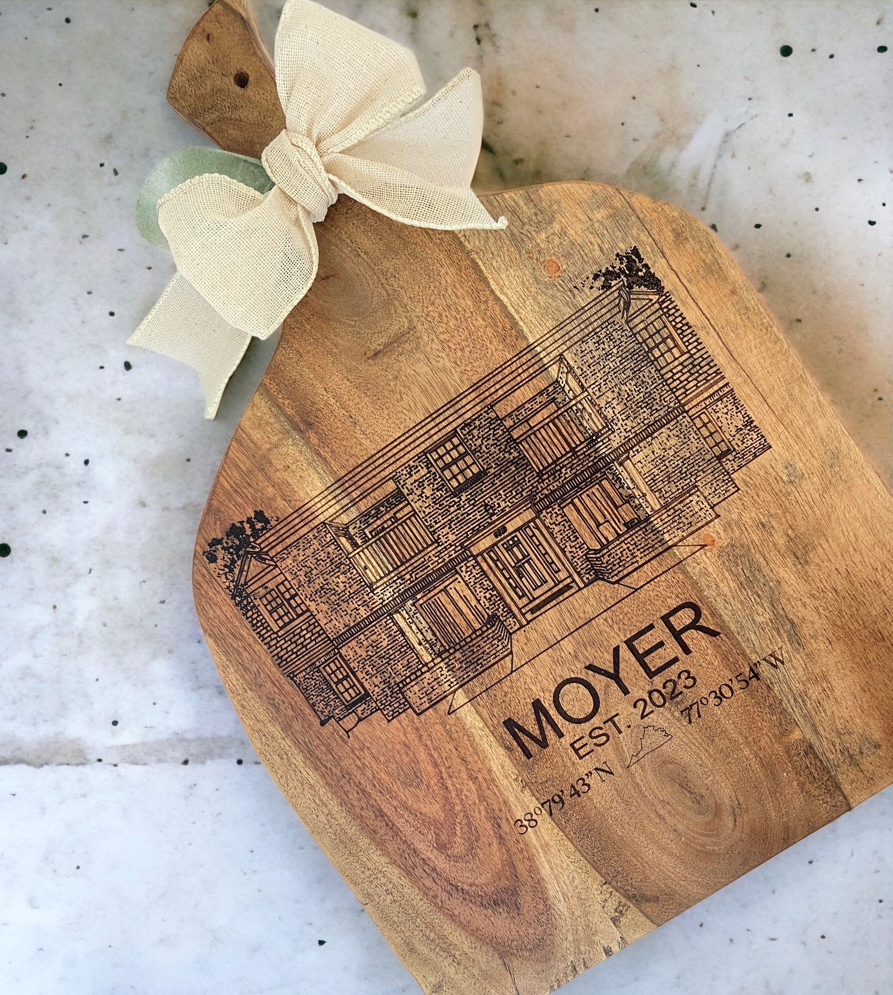 This beautiful wood board is a one-of-a-kind piece a perfect gift for someone celebrating a housewarming, or for anyone who wants to preserve the memory of a long-loved family home.